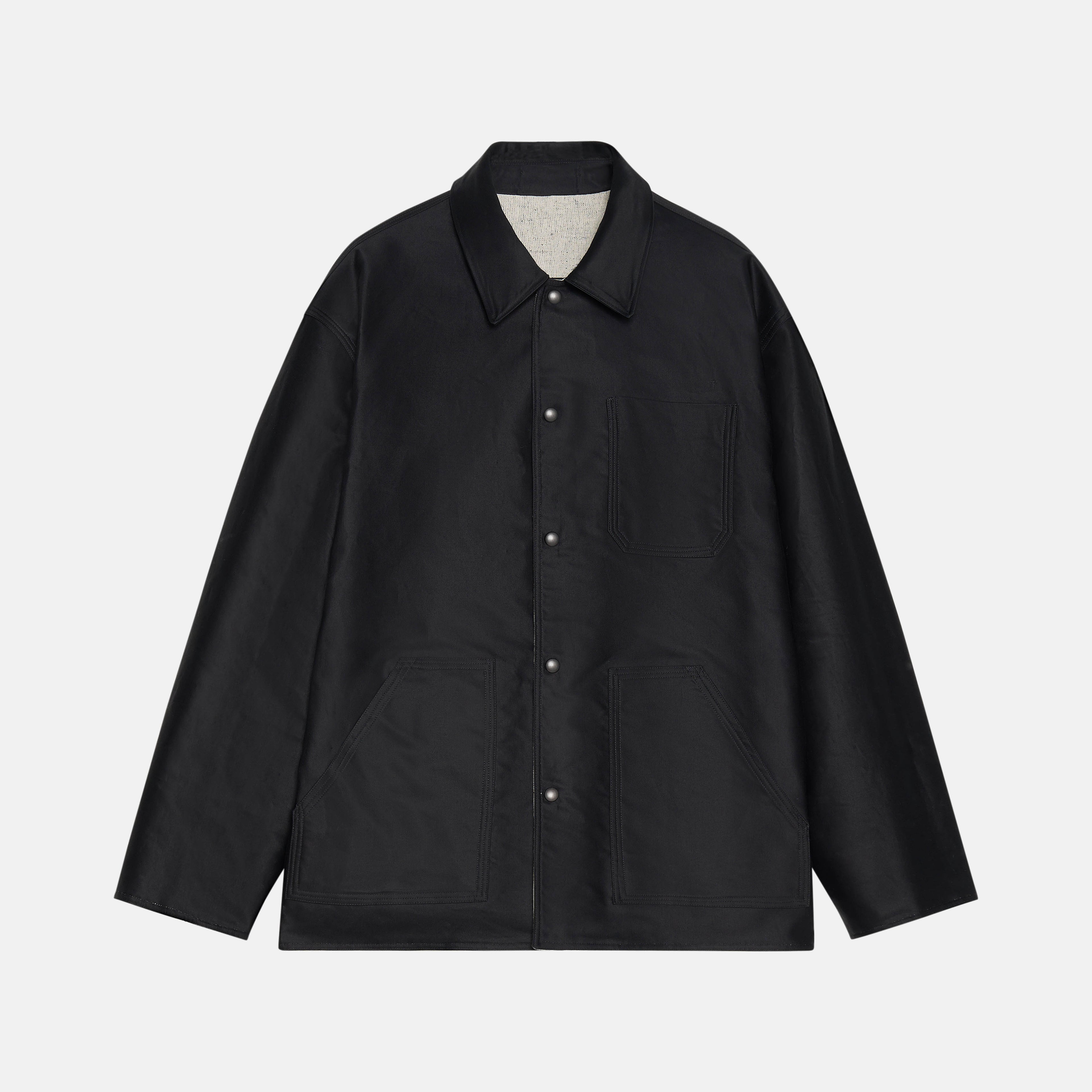 Veste de travail réversible en coton et chanvre et moleskine de coton noir .